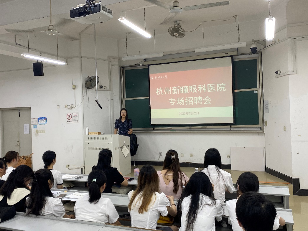 为切实做好我院2023届毕业生就业工作,拓宽毕业生就业渠道, 7月2日,护理学院组织开展新瞳眼科医院专场招聘会,招聘会在滨江校区举行。