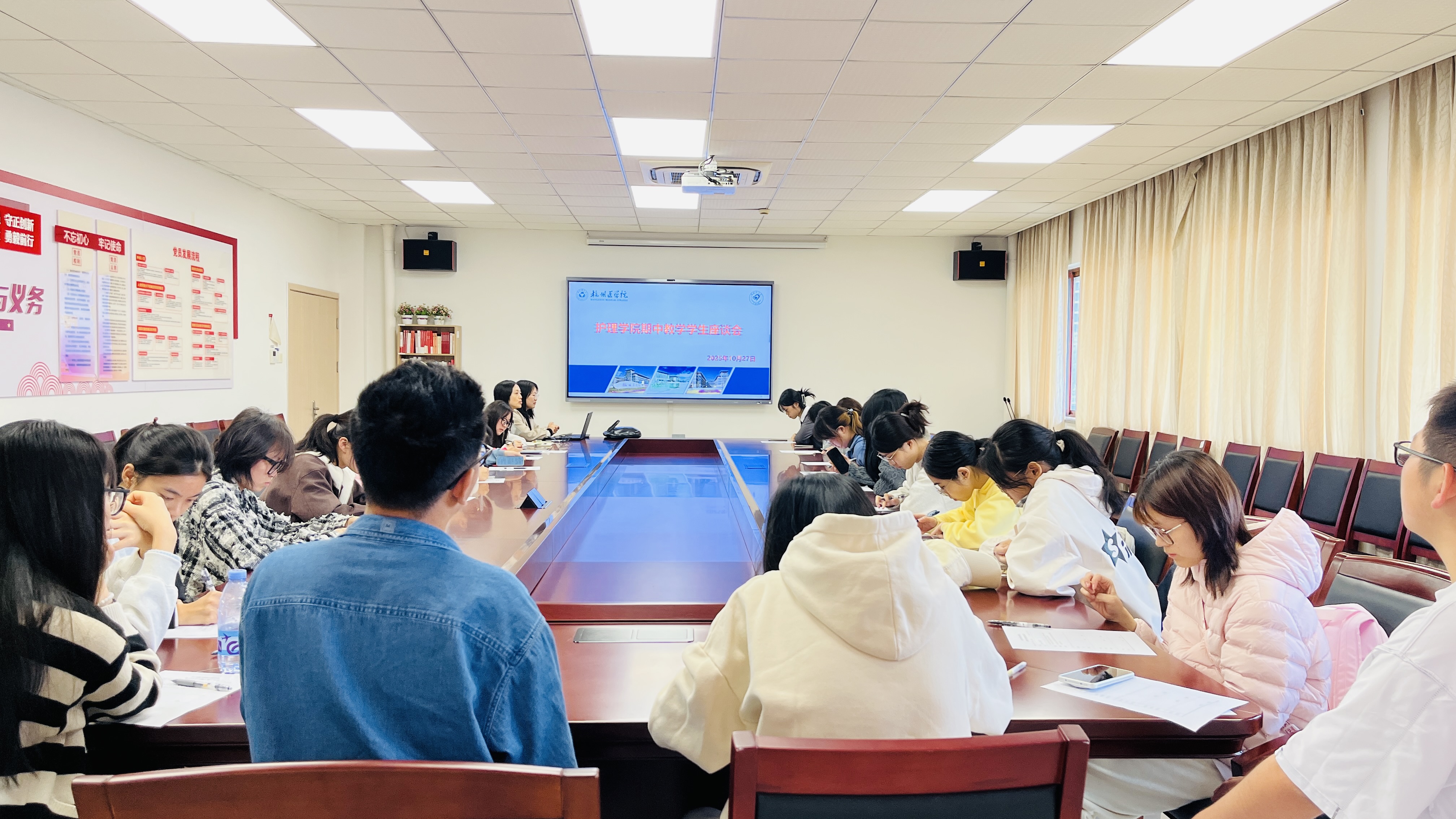 2025年10月27日至28日,护理学院召开了2024级、2025级学生座谈会暨学生学业管理教育会。会议由院办主管张广宁主持,本专科各层次学生代表40余人参加了座谈。