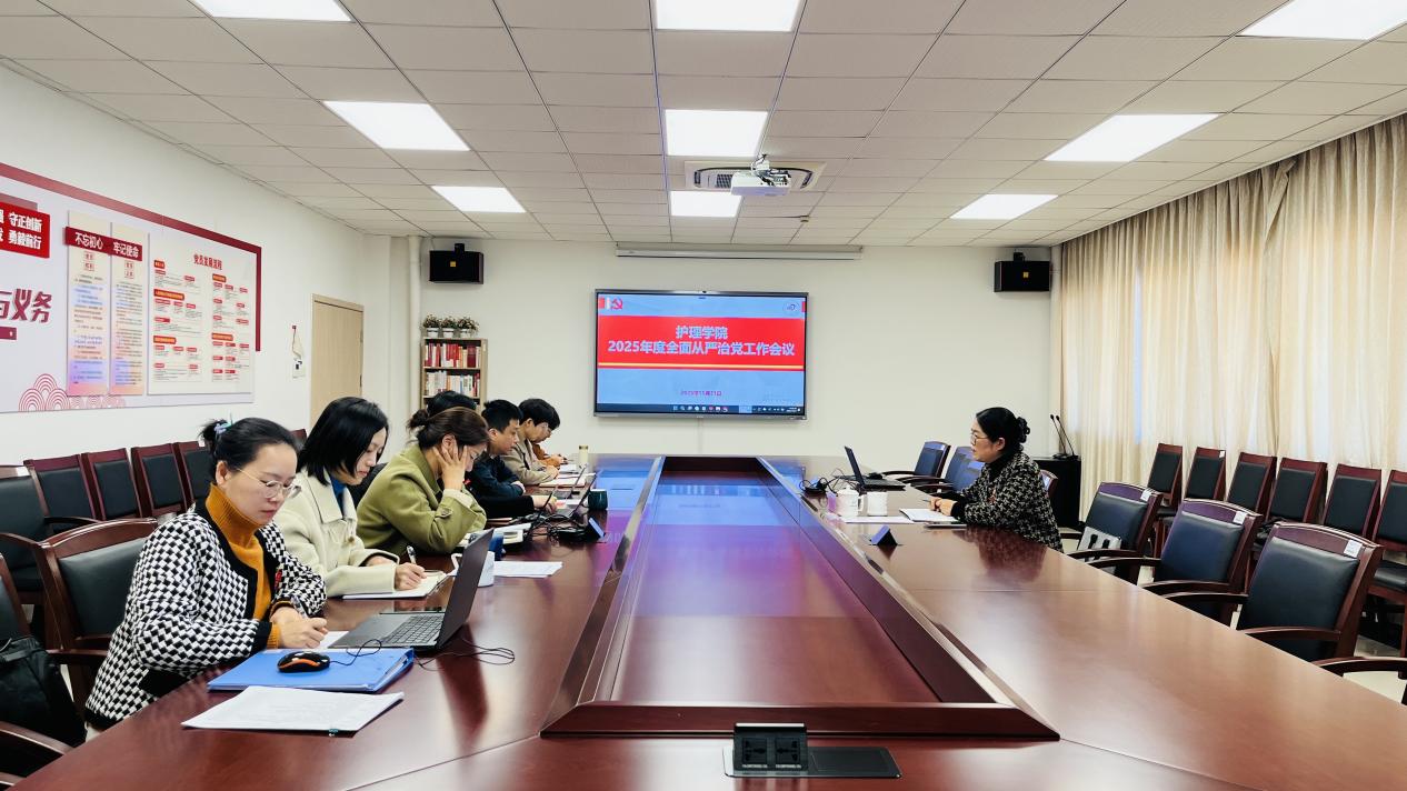 11月21日,护理学院召开2025年度全面从严治党工作会议。联系校领导,校党委委员、组织部(人才办)部长(主任)兼机关党委书记董雨琴出席会议并讲话。她强调,要提高政治站位,深刻把握护理教育领域全面从严治党的特殊意义,聚焦重点任务,推动护理学院全面从严治党向纵深发展。校统战部常务副部长兼护理学院党委书记、副院长黄亦冰主持会议。全体党委成员参加了会议。